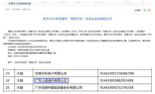 近日,東莞市倍增計劃工作領(lǐng)導(dǎo)小組辦公室發(fā)布了2021年東莞市“倍增計劃”試點(diǎn)企業(yè)名單,福日電子二級控股子公司廣東以諾通訊有限公司入選該名單。此次認(rèn)定的“倍增計劃”試點(diǎn)企業(yè)重點(diǎn)聚焦在東莞市制造業(yè)企業(yè)、生產(chǎn)性服務(wù)業(yè)企業(yè)、軟件與信息技術(shù)服務(wù)業(yè)企業(yè)。