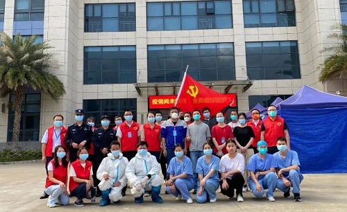 從早上8點半起,周邊企業(yè)的員工們就分批來到等待區(qū)域。“請往這里走?!薄奥闊┏鍪疽幌滦谐檀a?!币荒ò咨c紅色交織的身影,正在進行現(xiàn)場分流引導、幫忙查詢行程,他們正是由邁銳光電黨支部黨員和入黨積極分子組成的7人志愿者隊伍。在他們的助力下,現(xiàn)場每個步驟環(huán)環(huán)相扣、有條不紊,在當日16時即完成全部6500余人的核酸檢測工作,讓黨旗在防疫一線高高飄揚。