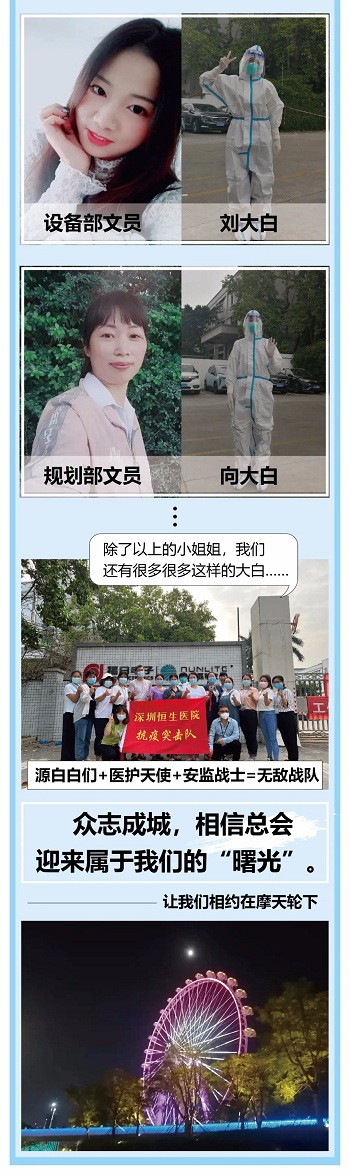 無獨有偶,源磊科技也用“微光聚愛”。從2月26日至3月22日,在其中的13個日子里,源磊科技的16名志愿者“逆行”奔赴防疫前線,配合當?shù)赜嘘P部門開展消毒、核酸檢測等工作。無論驕陽似火,亦或刮風下雨,這群“大白”們都堅守在志愿服務一線。正如他們所說,疫情當前,他們從不缺席,迎接美好四月天是他們堅持的動力。