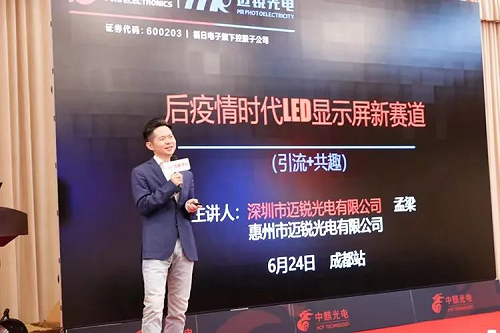 6月24日,大屏幕顯示百家講壇全國系列巡展活動第四站在成都圓滿落幕。本次活動以“迎接LED顯示行業劇變時代”為主題,匯聚眾多行業專家和產業鏈上下游的代表企業,以解讀報告、主題演講、創新產品與解決方案等形式,共同探討行業前沿技術與應用,深度解析LED顯示行業發展新趨勢。福建省電子信息集團成員企業福建福日電子股份有限公司所屬邁銳光電有限公司受邀出席本次活動,為現場觀眾帶來《后疫情時代LED顯示屏新賽道》主題分享。